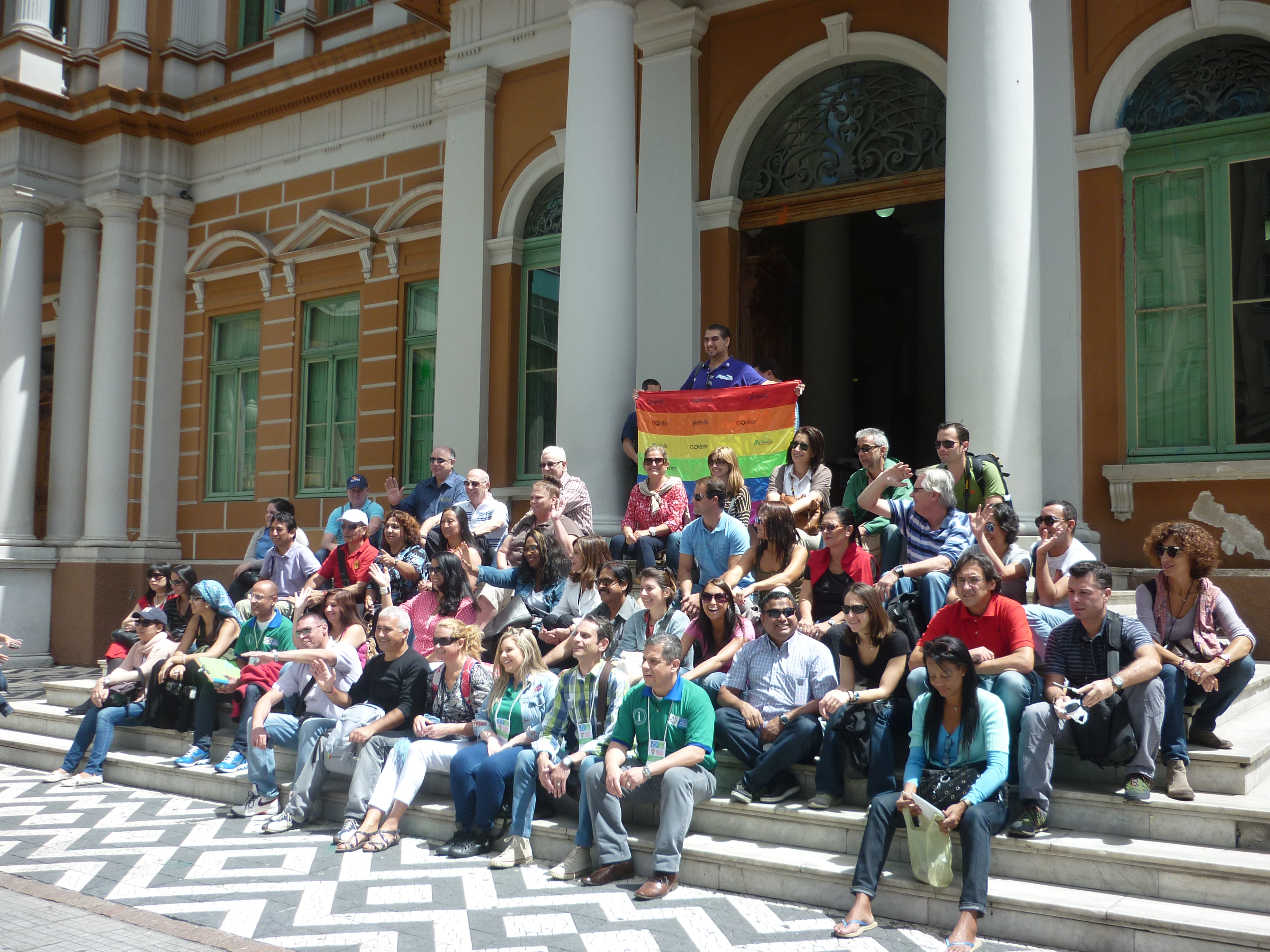 Grupo de agentes de viagem de Curitiba (PR) e região na frente do Teatro Municipal, em Manaus (AM).